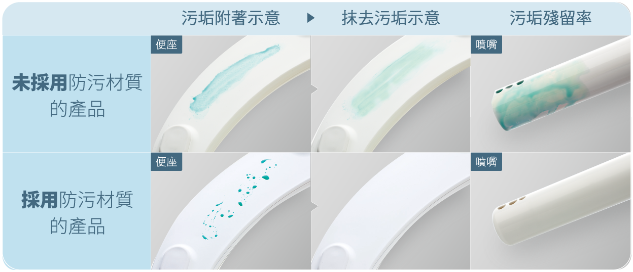 噴嘴及便座均搭載創新抗污成分,高持久撥水性
